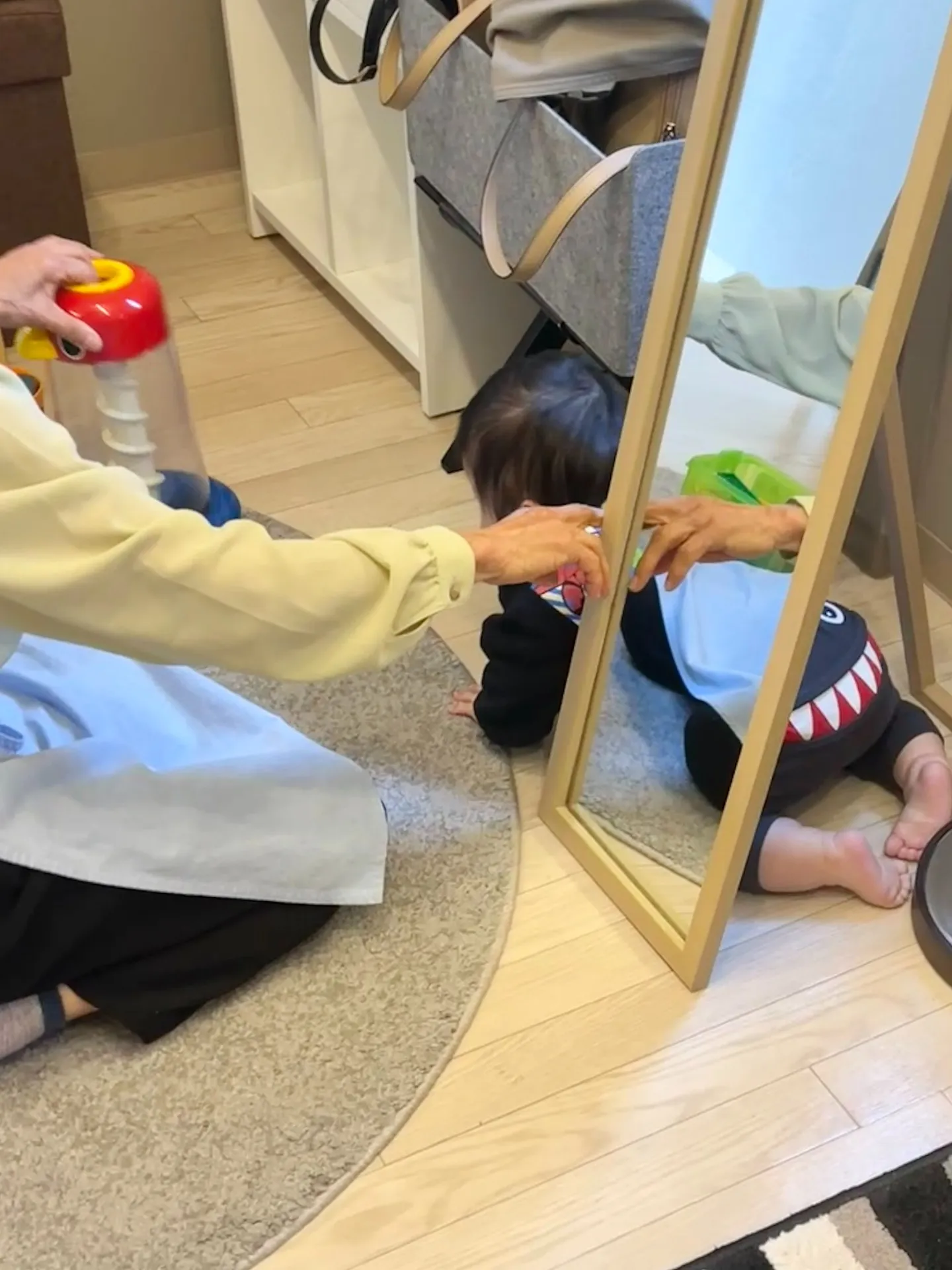 そのうち動き回るようになって鏡の下だって潜り抜けられるように。